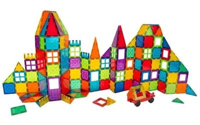 Construye lo más alto que puedas con tus bloques geométricos de diferentes tamaños y colores, que te permitirán hacer construcciones en 2 y 3 dimensiones sujetas por superimanes de neodimio.
