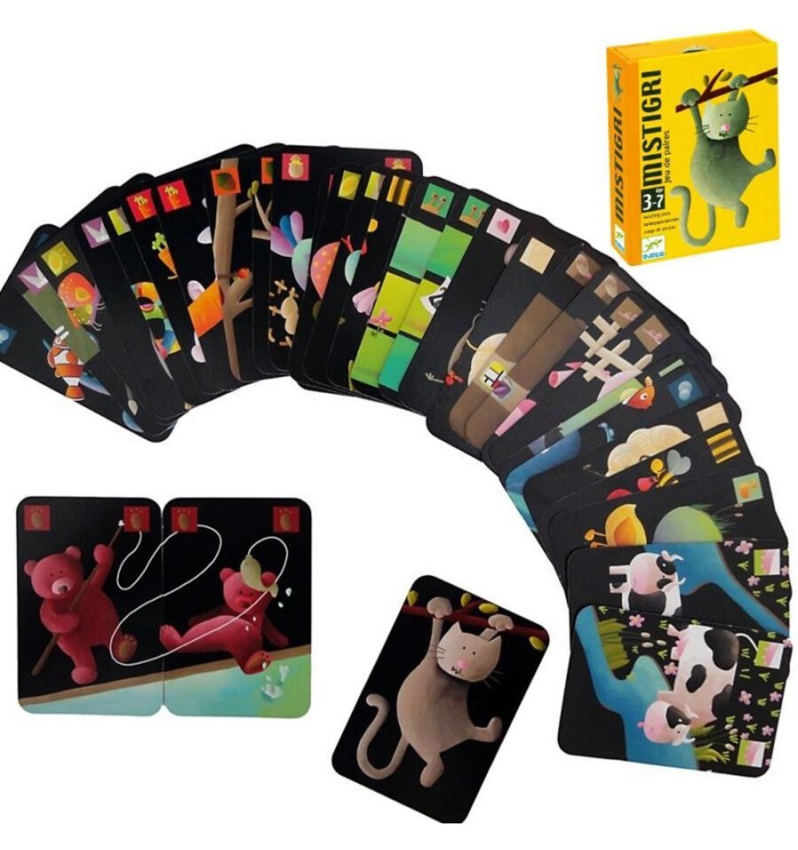 The goal is to be the first to run out of cards in your hand, and of course, not to be left with the "Mistigri" card, or the black kitten.Game preparation:All cards are dealt equally among all players. Each player discards the pairs they find in their first hand, placing them face up in the discard pile.Development:Each player takes their turn choosing one of the cards from the player to their left. If you've managed to make another pair, you discard it to the discard pile. If you haven't managed to make a pair, you keep it in your hand and pass the turn.The first player to get rid of all their cards wins!!Djeco is a family business, founded in 1954 and passed down from mother to son. A long-standing company whose only key words are: Creativity, Boldness, and Passion. Since 1995, they have focused on the production of educational toys.