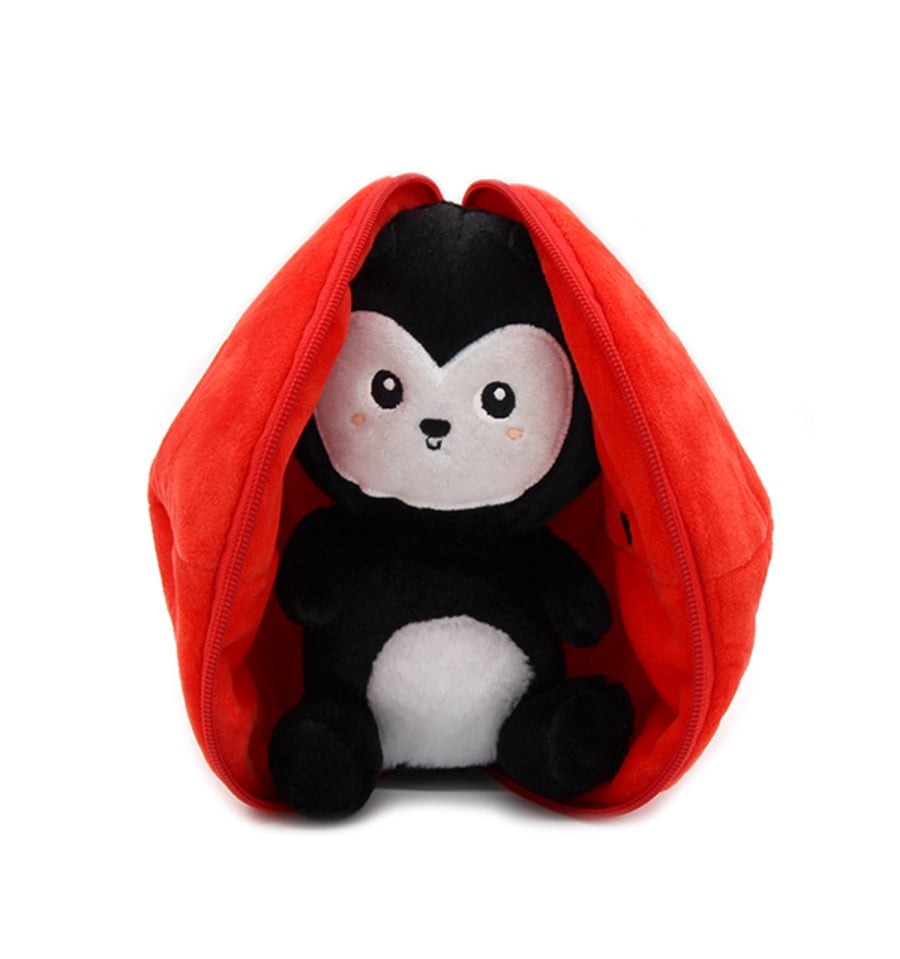 The Ladybug Comet is an adorable ladybug hiding inside her tomato. Unzip her and turn her over to reveal her large ladybug wings.