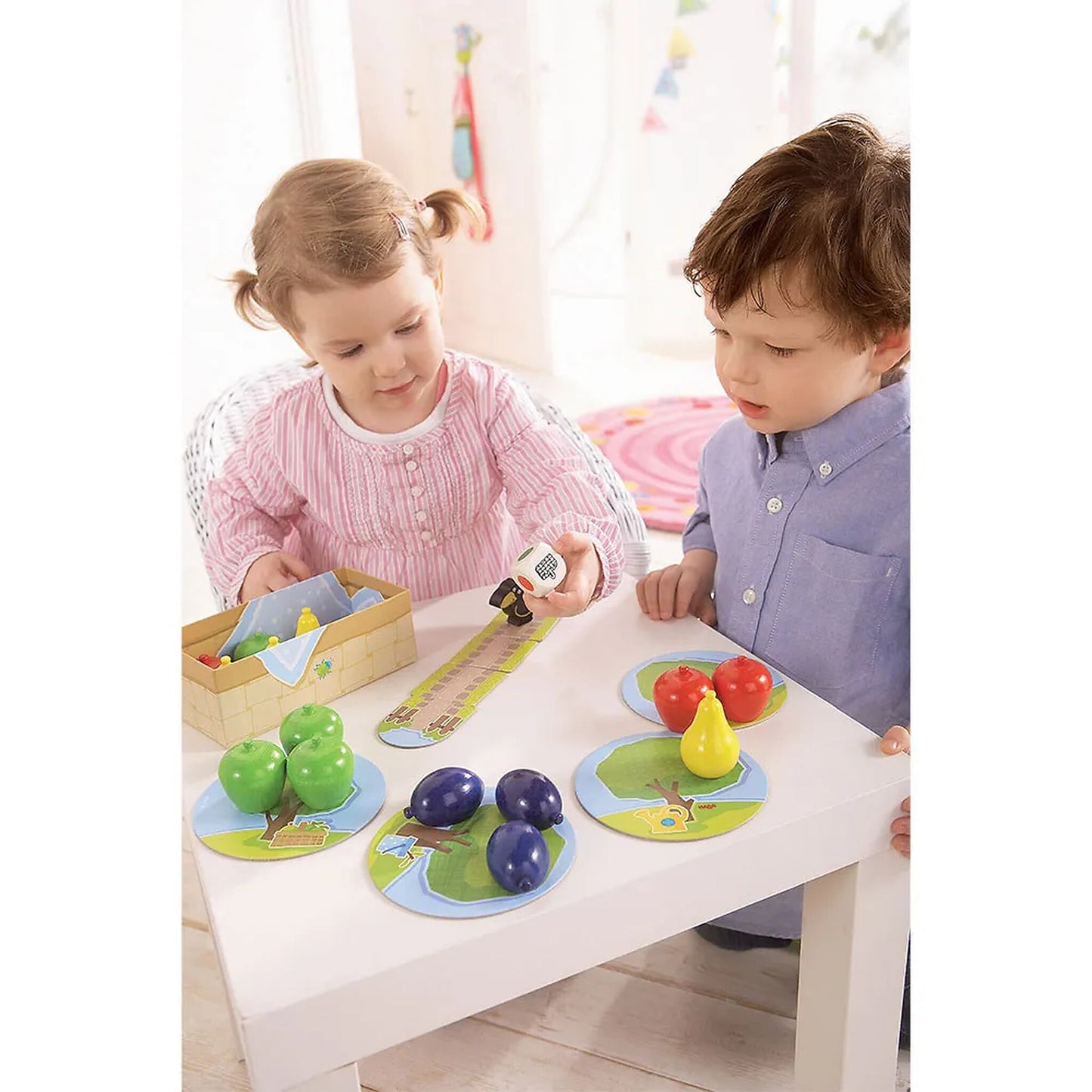 HABA's classic "The Fruit Tree" game is now for little ones: the rules have been adapted to their age, and the play materials have been specially designed for children's little hands. These beautiful and handy wooden pieces also encourage free play and simultaneously stimulate fine motor skills.