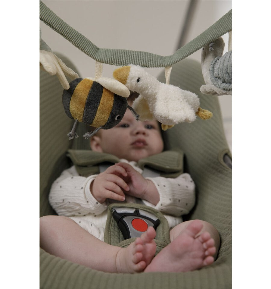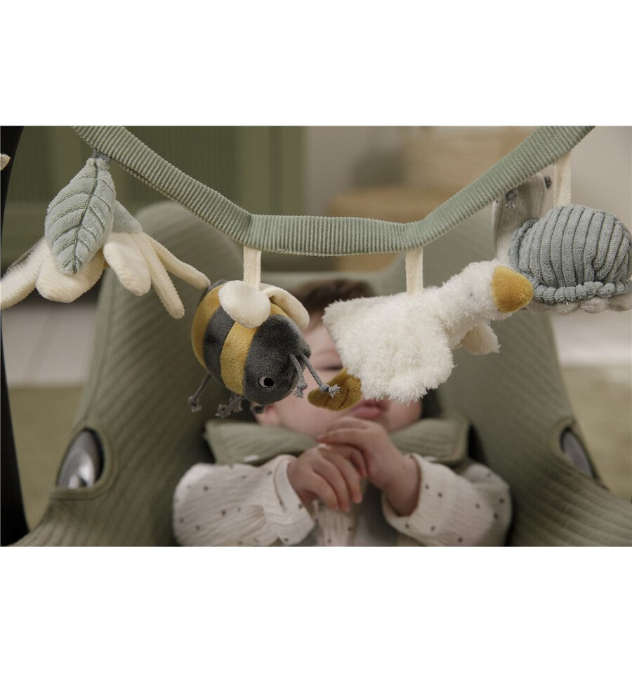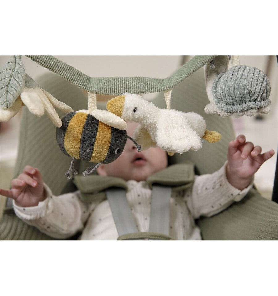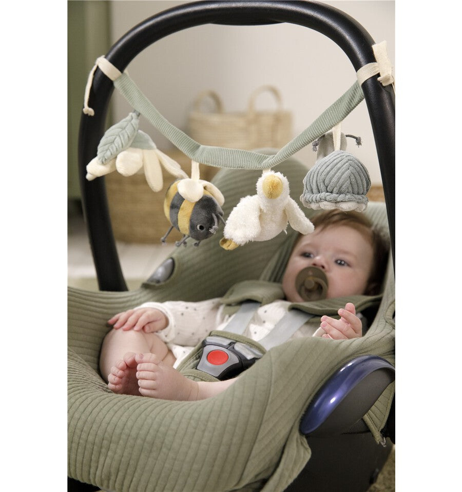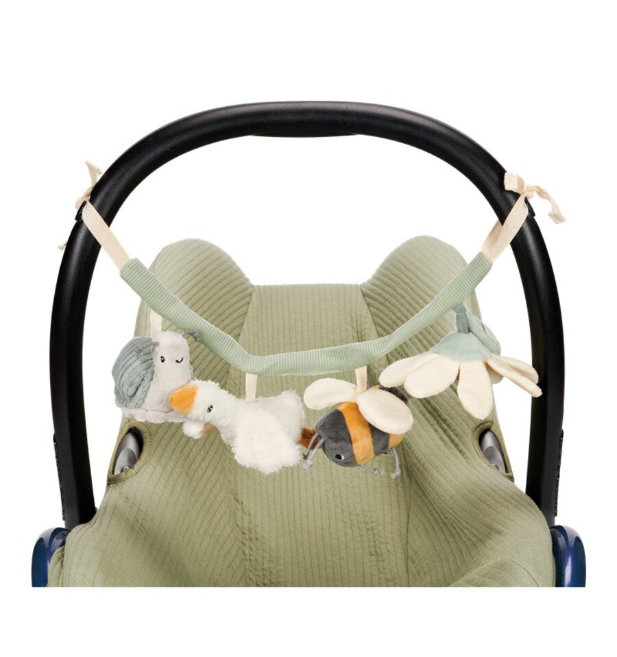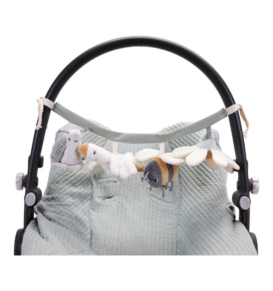 This Little Dutch crib and stroller charm from the Little Goose collection is easy to attach to the car seat or stroller and provides lots of fun and entertainment, thanks to its rattle, mirror, and squeaker. And best of all, while they're having fun, they're also stimulating their hand-eye coordination.