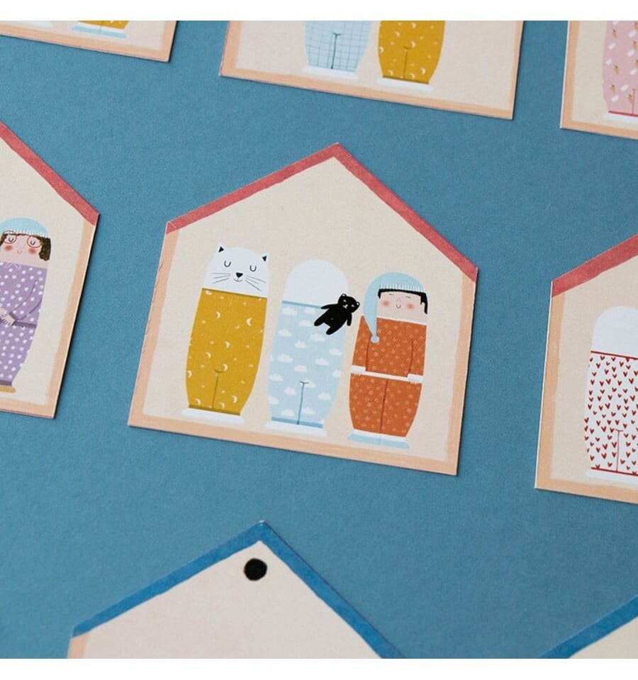 Using the house-shaped cards, you'll have to find all the members of the same family in a single turn.