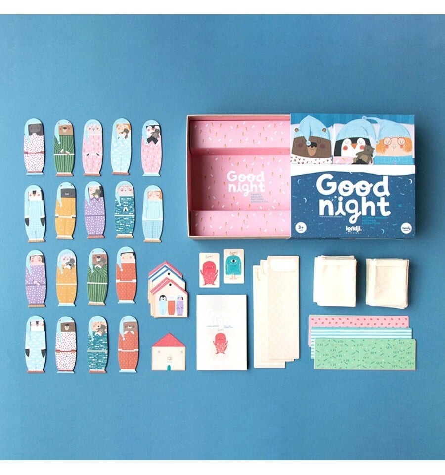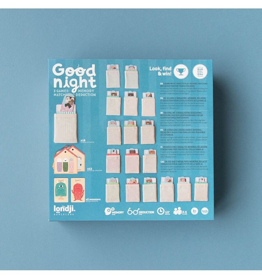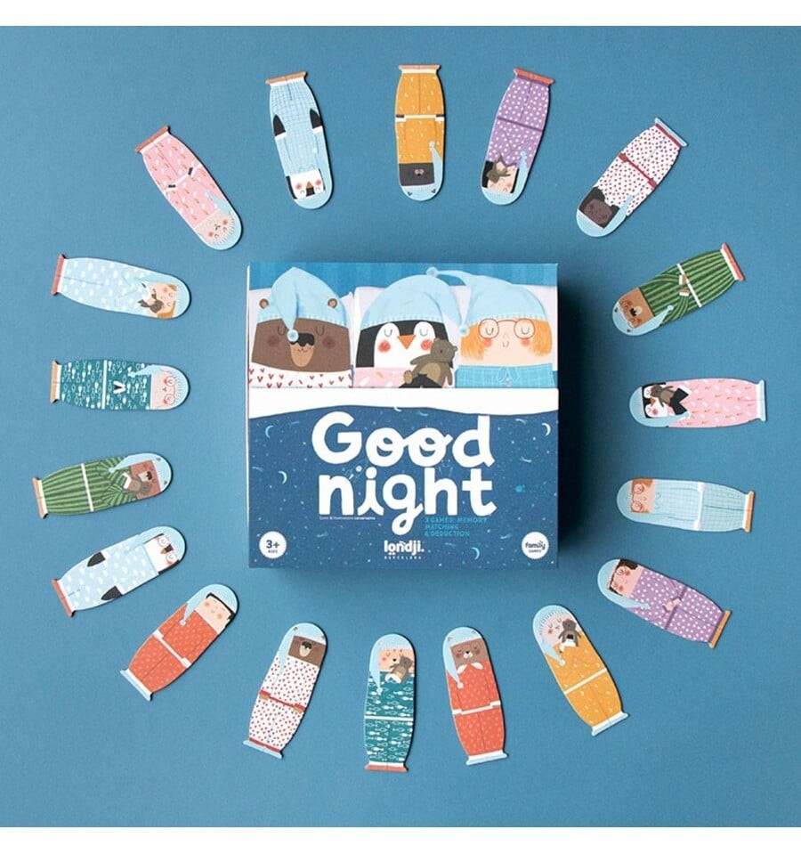 Good Night, a nice and pleasant board game with 3 game modes: memory, relationship and deduction :