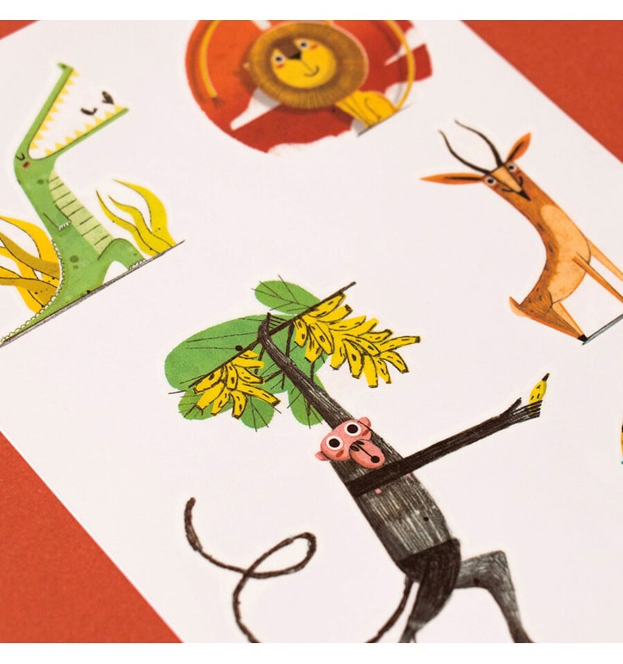 Lions, zebras, giraffes, and gazelles... 10 stickers of our friendly jungle friends.