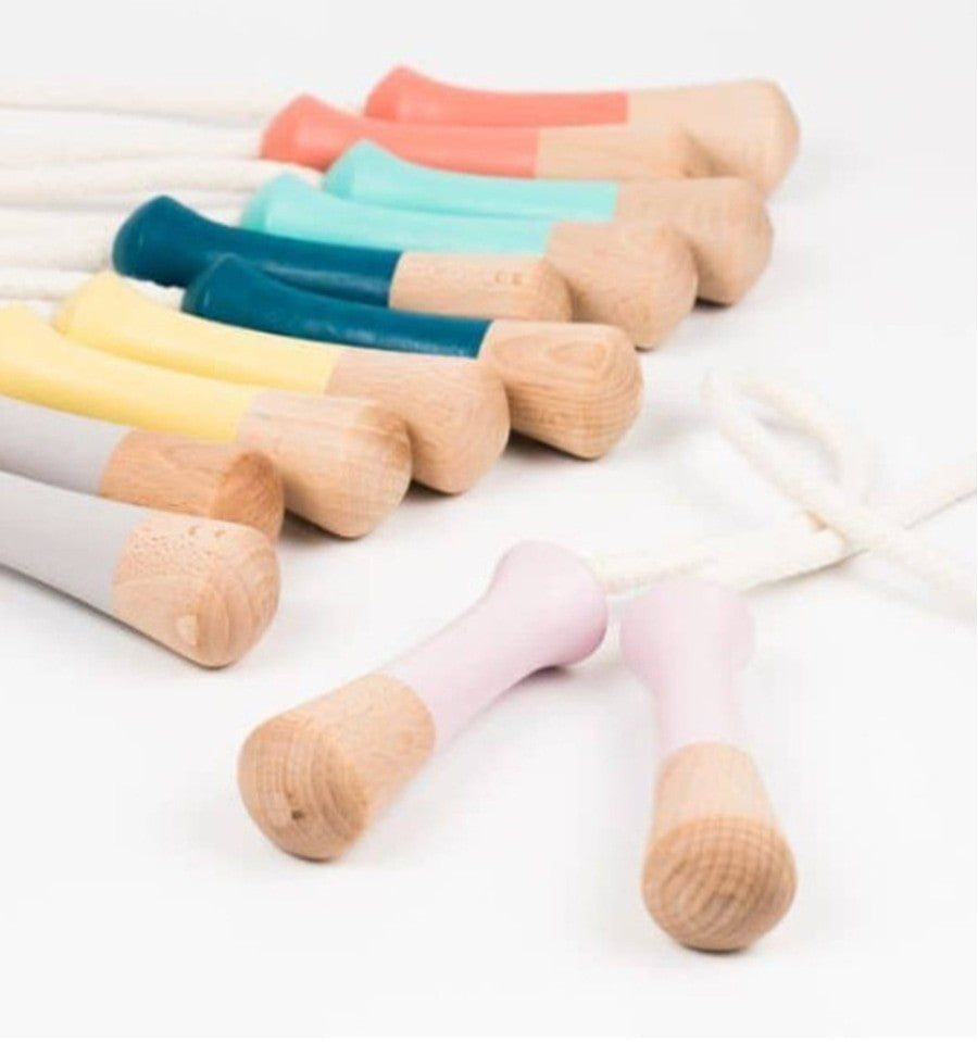 Me & Mine brings us a 2m jump rope so you can jump nonstop until you can't go any further. Made of cotton, the beechwood handles measure 13cm and are painted in a variety of colors.