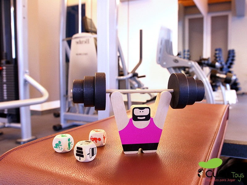 Challenge yourself and your friends in fun tests of coordination and balance. Stand up from the table and perform the movements indicated by the dice without dropping the weight plates on the floor.