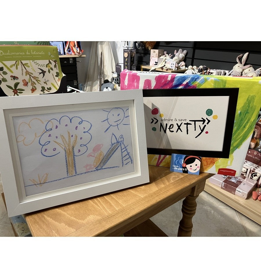 Exhibe las creaciones artísticas de tus hijos con el Marco A4 de Almacenamiento para Dibujos Nextty. Con espacio para hasta 100 dibujos y 4 paspartús para personalización, este marco es la forma perfecta de honrar la creatividad de tus pequeños artistas. Su versatilidad te permite colgarlo en la pared o apoyarlo en la mesa en formato vertical o panorámico. Fabricado con materiales de alta calidad para una protección duradera.