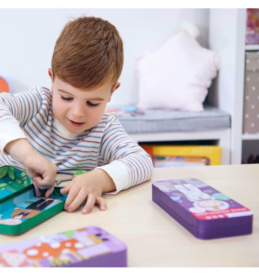 It includes two space scenes and more than 30 magnetic pieces to create and recreate your own adventures. Its compact metal box makes it perfect for travel and keeps little ones entertained while developing motor skills and creative thinking. They can also use it as a classroom pencil case!