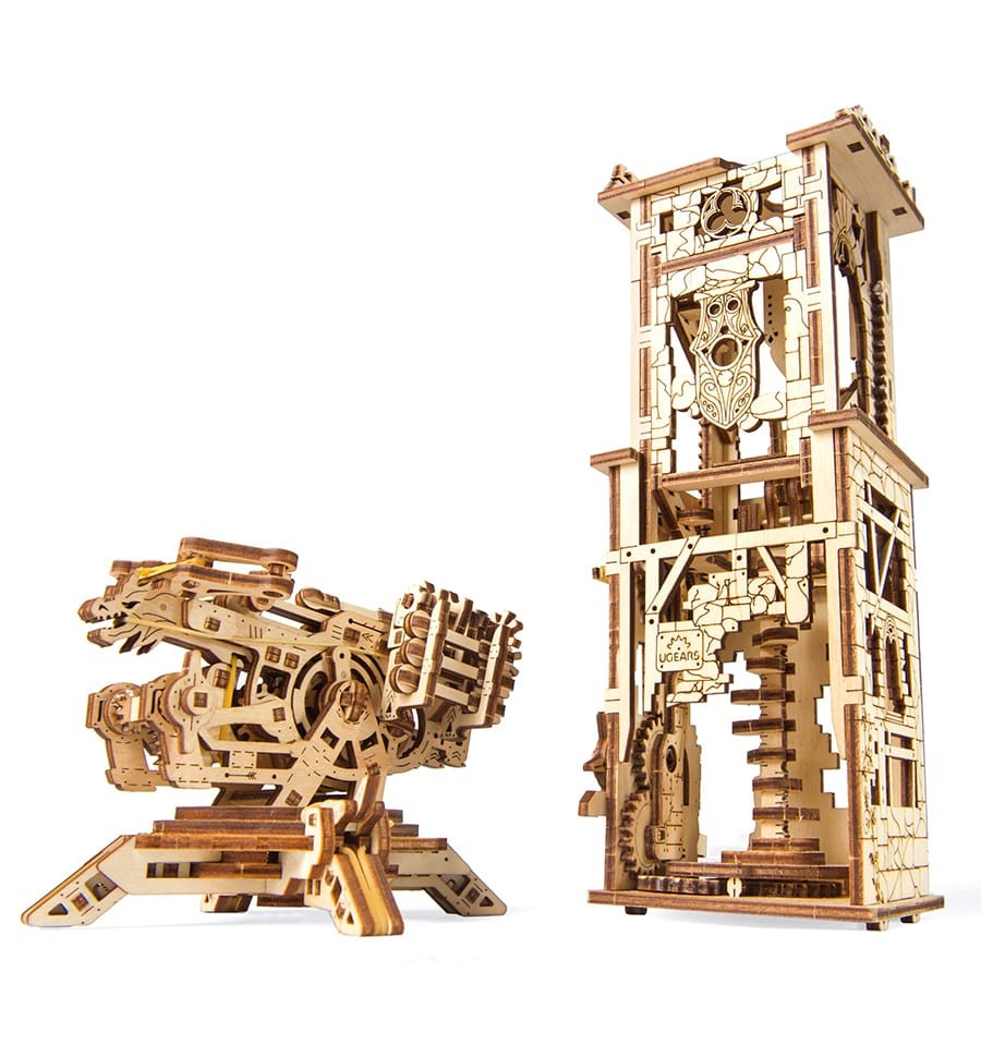 Ugears goes romantically medieval and invites you to become a siege expert with its fascinating new Ballista Tower model. Inspired by the finest examples of ancient artillery and legendary battles recreated in films, books, and games, this model reinterprets the classic war machine to test your prowess as a great conqueror.