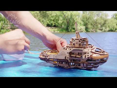 The uGears engineers and designers like to believe that, just like them, many others enjoy watching gears work. That's why the tugboat's hull is designed to expose the moving mechanism. You'll be able to clearly see the key technical elements incorporated into this model.