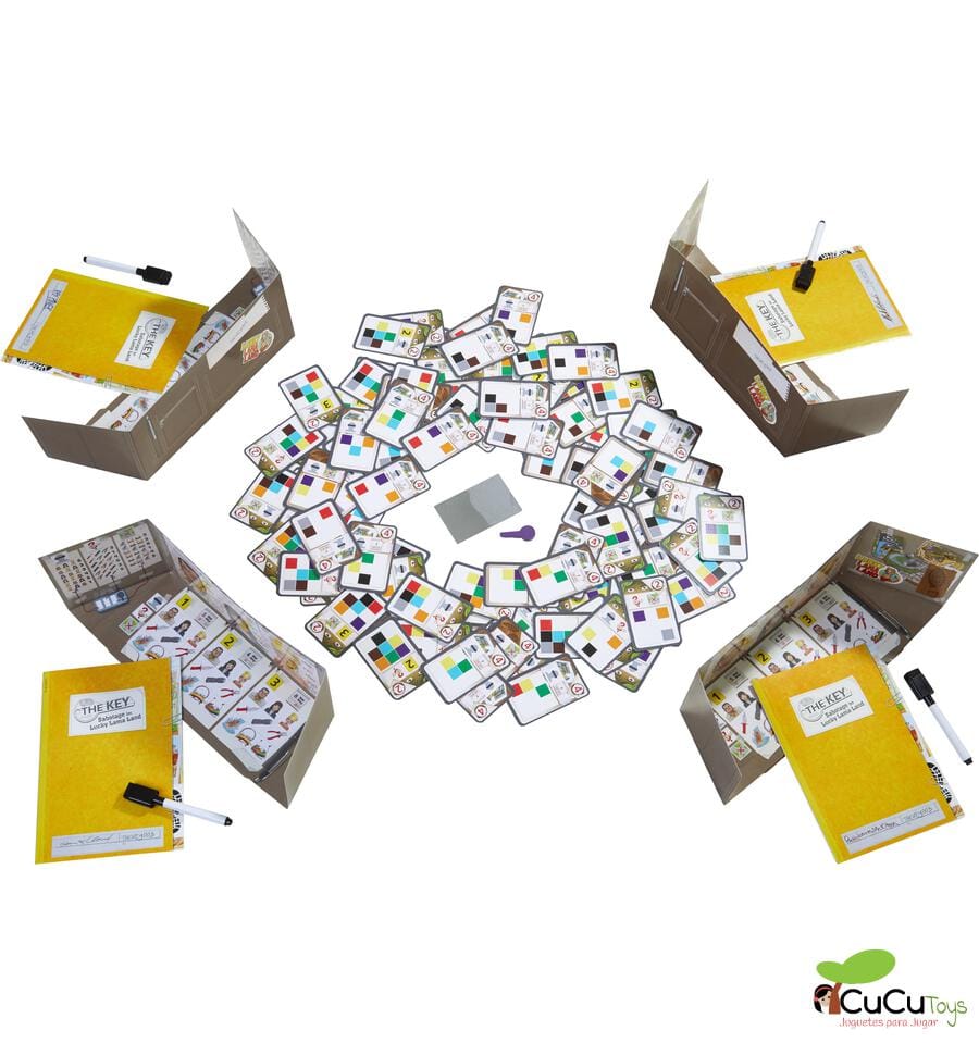 - Todos juegan al mismo tiempo: Se cogen las cartas del centro que muestren el color de la llave.