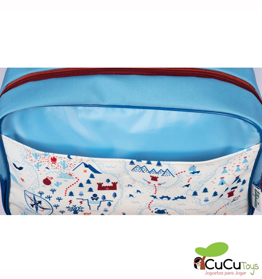 Una mochila A4 muy original y divertida. Encuentra el tesoro y surca los 7 mares con Jack el pirata. Y es que además de bonita, es impermeable y tiene pensados todos los detalles: