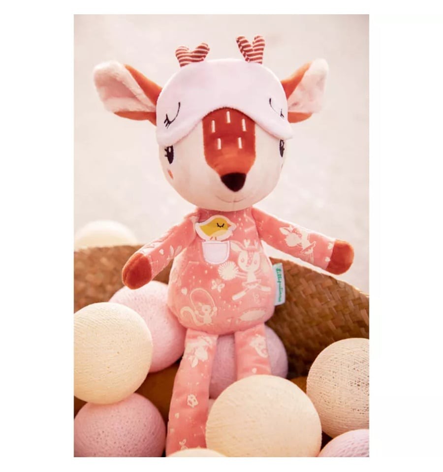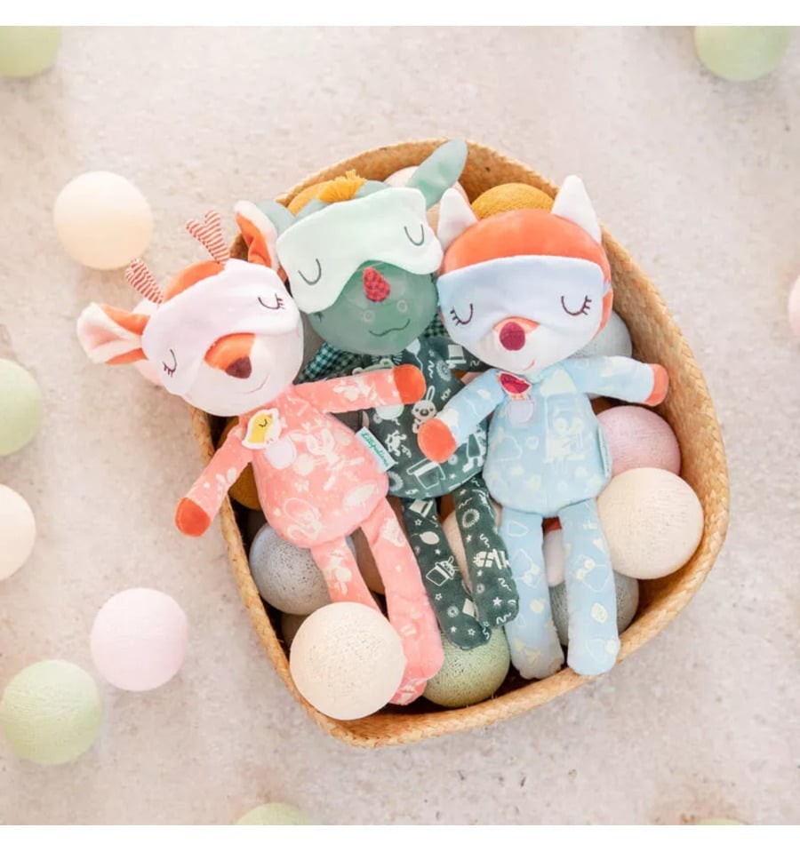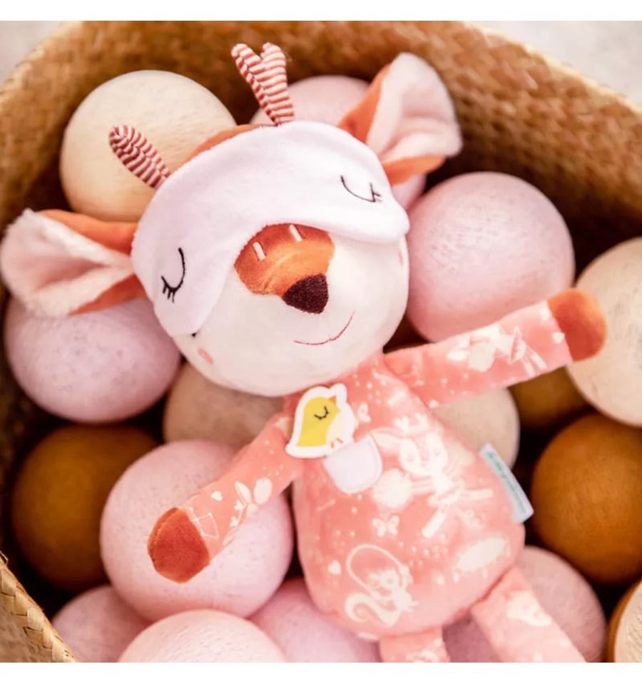 Por su diseño adorable y colores suaves, esta muñeca se convertirá en el confidente ideal para los más pequeños. Por sus detalles cuidados, como el brillo fosforescente de sus estrellas y la suavidad de su tela de peluche, harán que Stella sea su elección predilecta para acompañarles en sus sueños.
