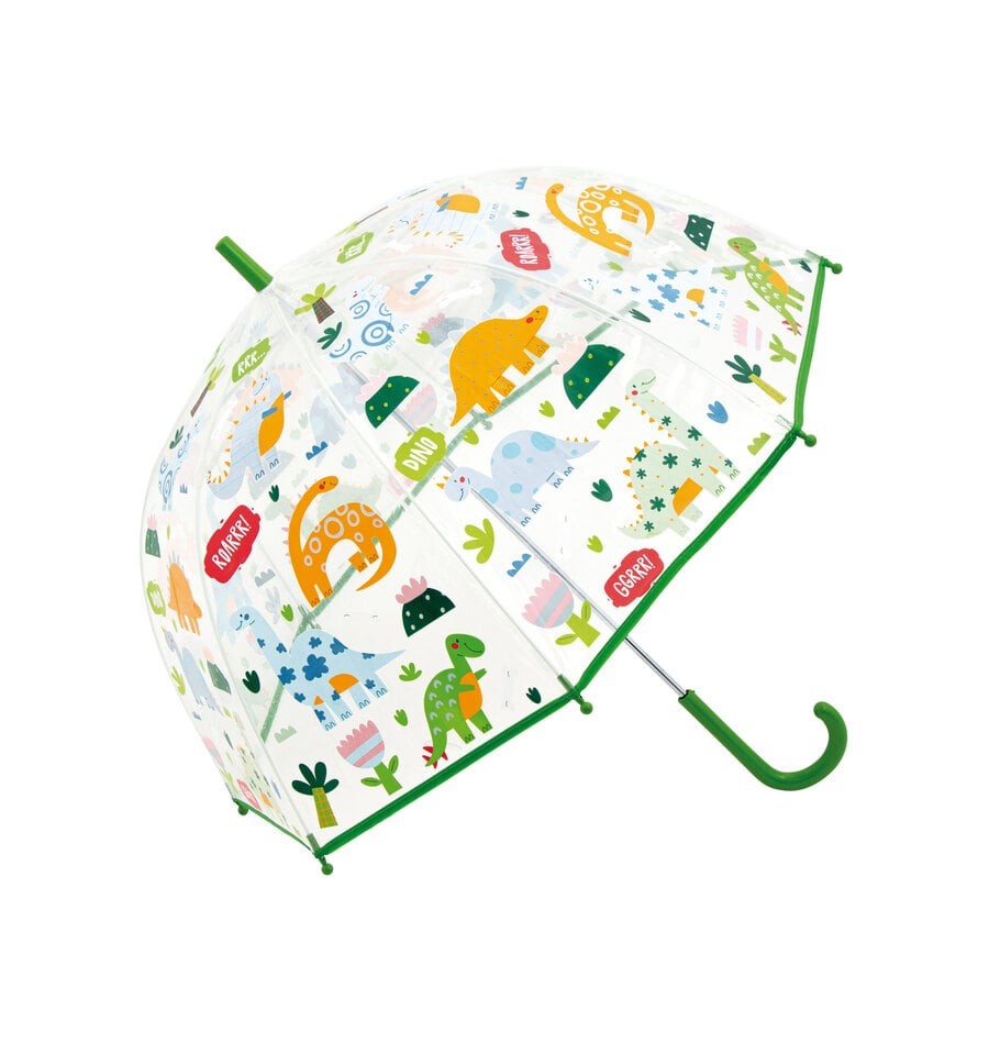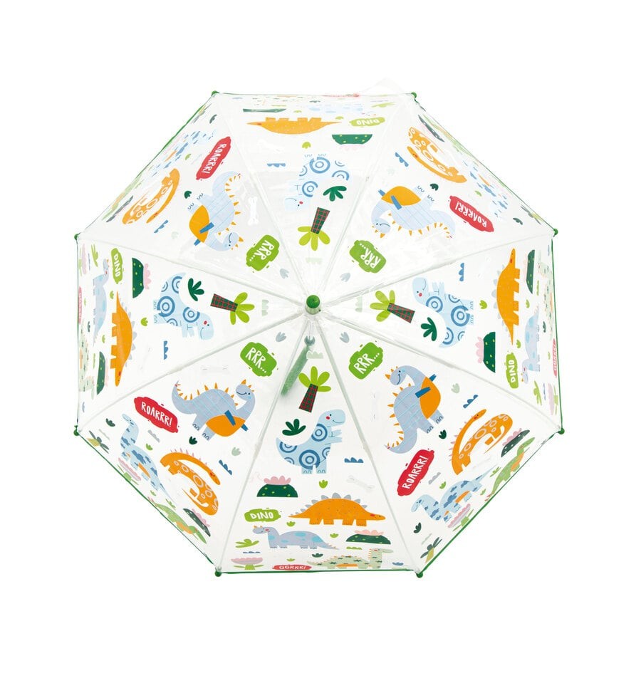 ¡Qué guay! ¡Llueve! Abre tu paraguas y paséate sin mojarte con el paraguas de dinosaurios lleno de bestias prehistóricas que cambian de color al mojarse.