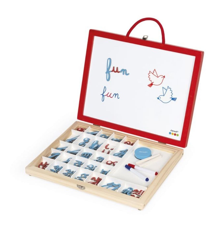 Aprender a escribir se convierte en una aventura divertida con el Maletín de Letras Cursivas 4 en 1 Essentiel de Janod. Este versátil maletín de madera está diseñado para acompañar a los niños en su proceso de aprendizaje de las letras cursivas, ofreciendo múltiples formas de interactuar y practicar.