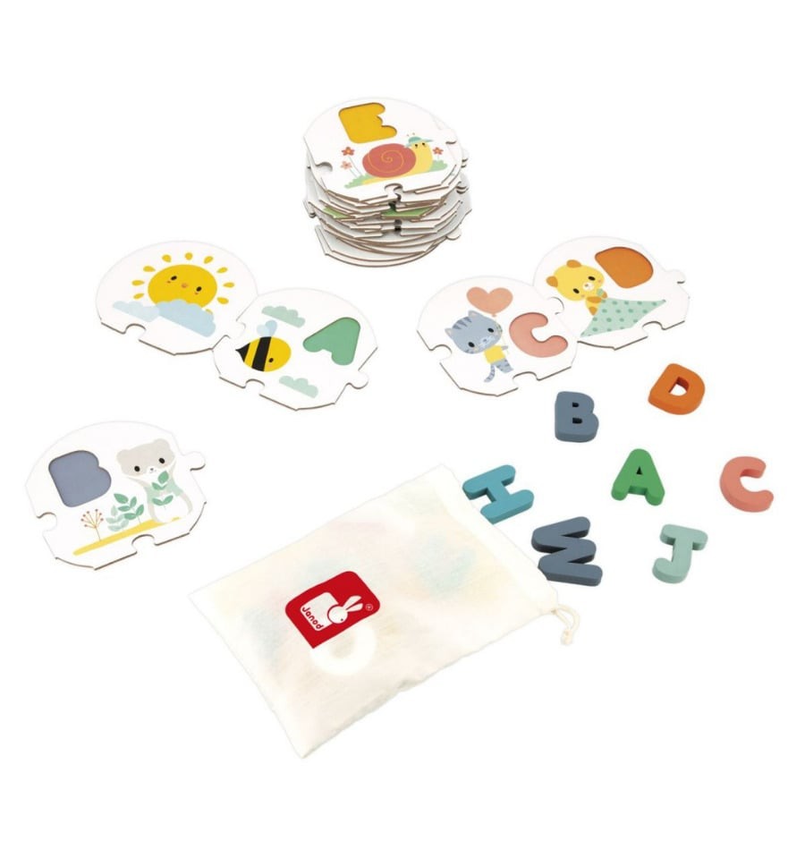 El Puzzle Mi Primer Abecedario Pure de Janod no es solo un juego de letras, es una herramienta para despertar el gusto por aprender desde la ternura del primer contacto con las palabras.
