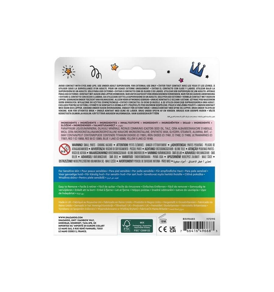 ¡Hora de dar rienda suelta a la imaginación y llenar de color cualquier ocasión! Con este pack de 12 ceras de maquillaje Snazaroo, convertirte en un superhéroe, un hada o un temible pirata nunca fue tan fácil (ni tan divertido).