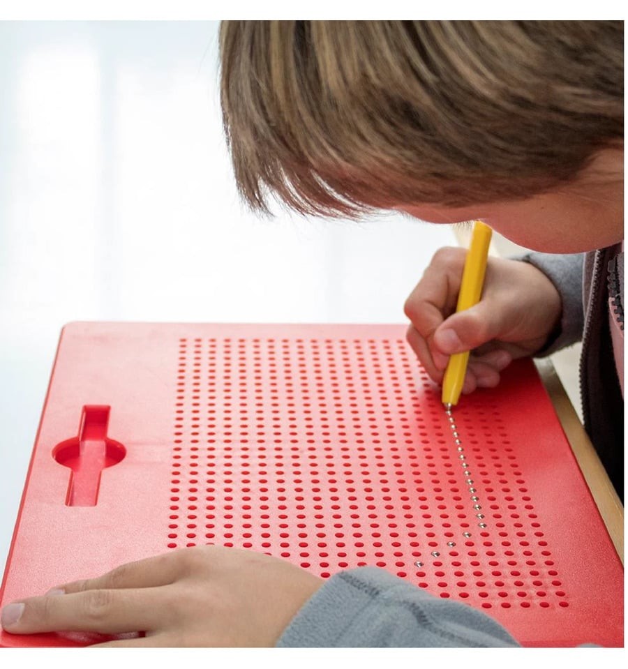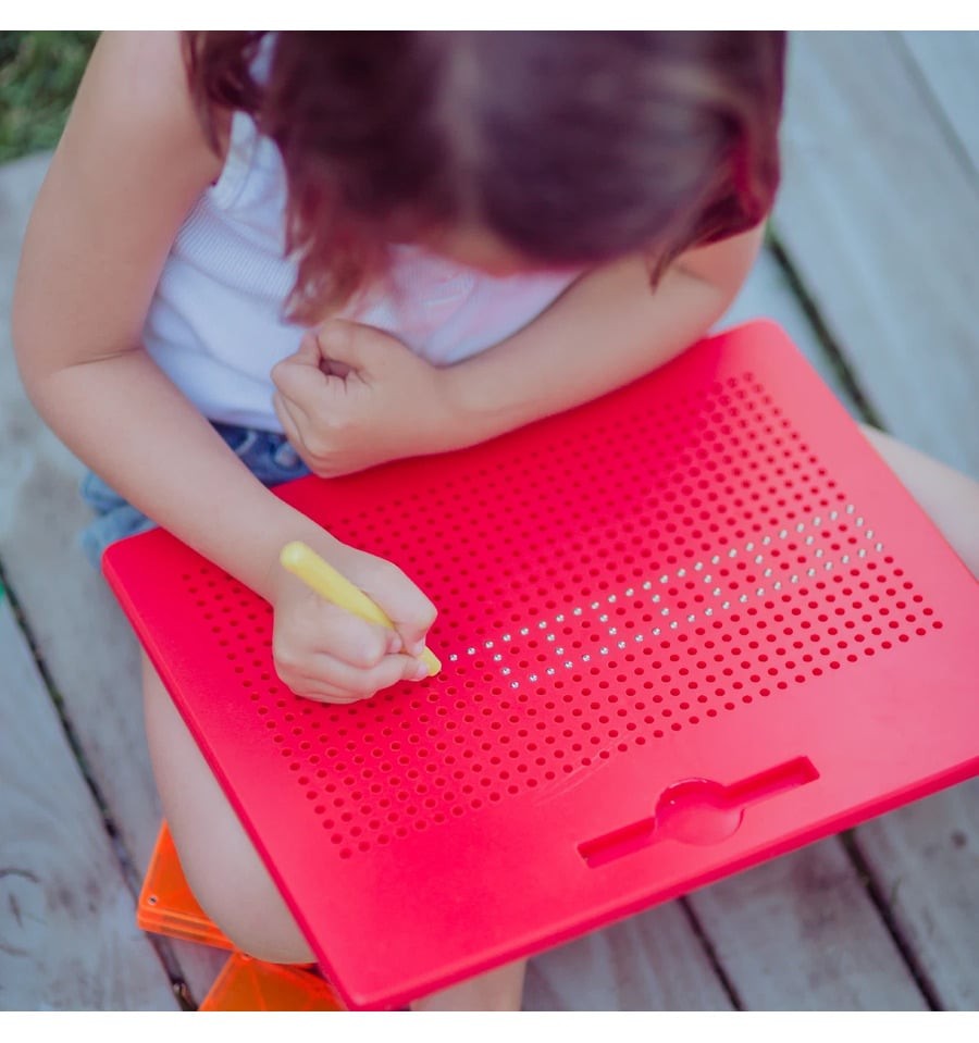 A Braintoys nos traz o Imapad com sua caneta magnética, que é um quadro composto por pequenas bolas magnéticas que sobem à superfície graças ao poder da caneta magnética e permitem desenhar figuras e desenhos repetidamente. Sem borrachas, resíduos ou manchas.