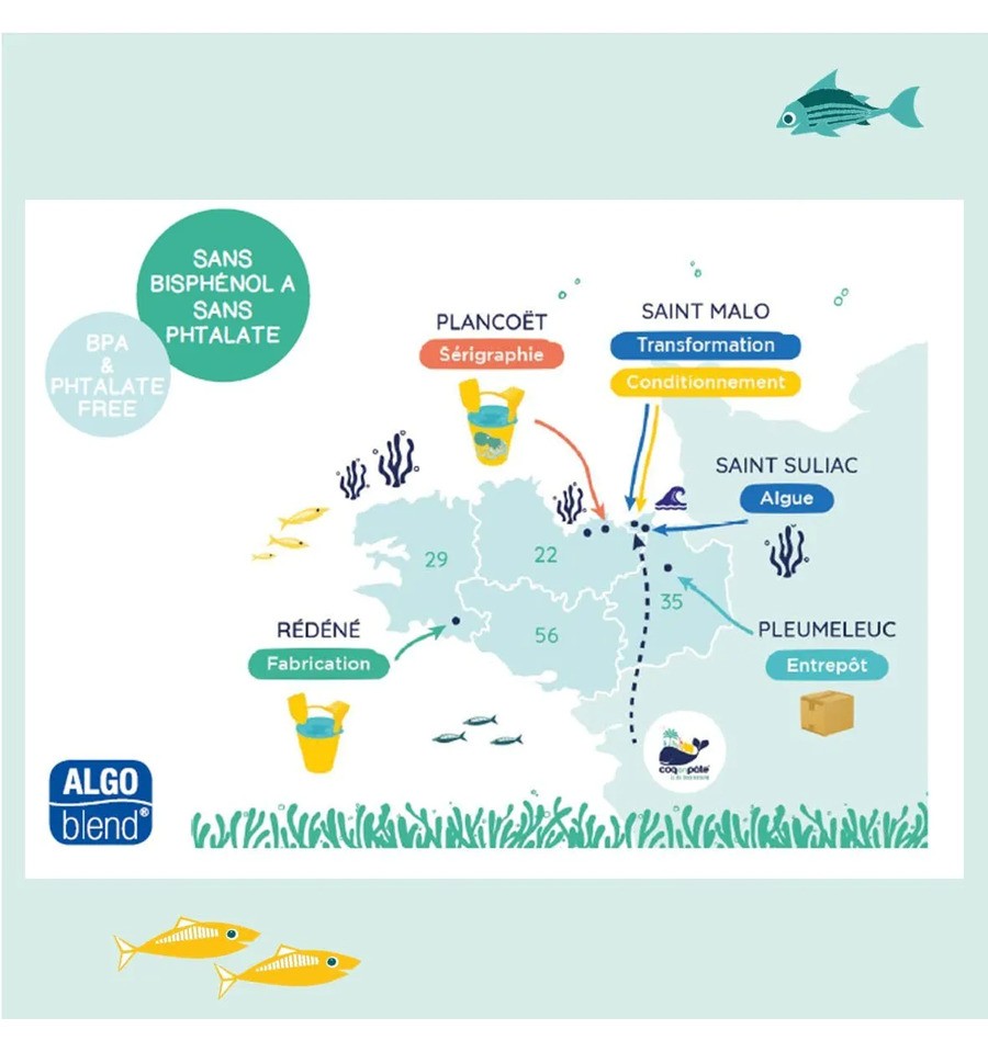 Na Coq en Pâte, eles têm brinquedos feitos com um material inovador e ecológico, o Algoblend®, que usa algas marrons colhidas na Bretanha e é livre de Bisfenol A e Ftalatos. Algas substituem o plástico!