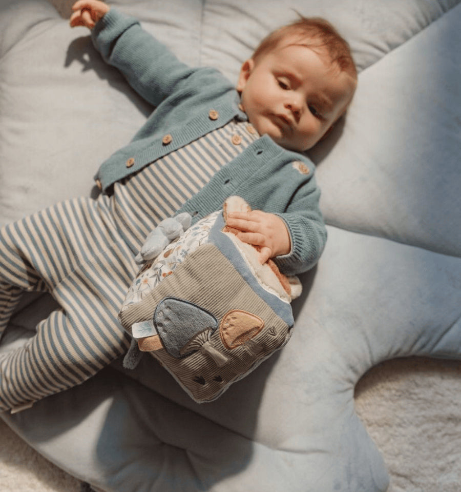 Este cubo de atividades macio é cheio de texturas, formas, sons e personagens da floresta. Leve, suave e estimulante, é perfeito para explorar todos os seus sentidos desde o primeiro dia.