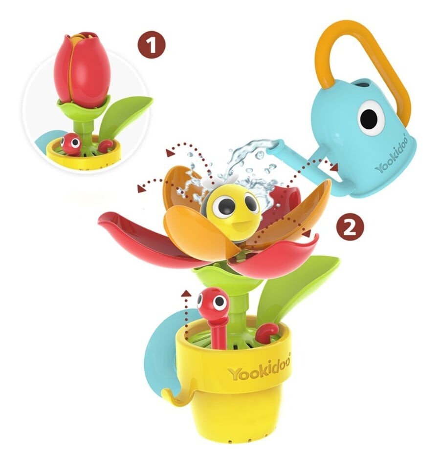 da Yookidoo é um brinquedo de banho projetado para transformar a rotina em uma experiência cheia de aprendizado e diversão. Seu design em formato de vaso com uma flor e uma minhoca surgindo captura a atenção das crianças, convidando-as a explorar e experimentar.