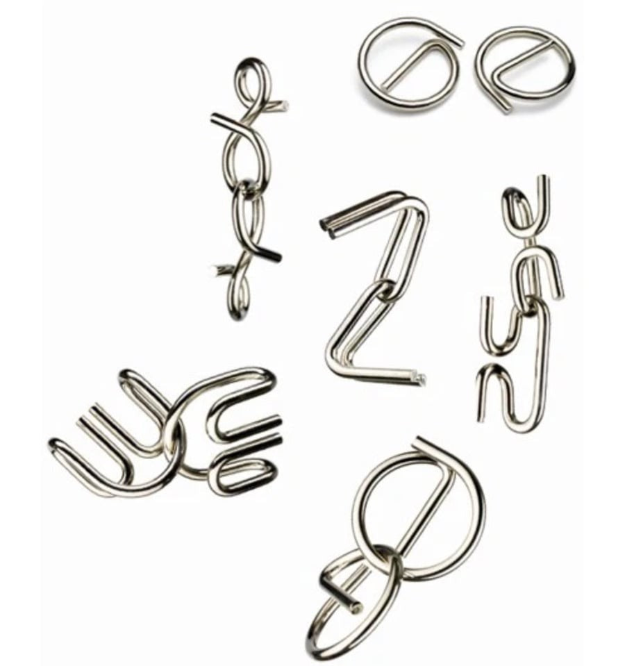 A Djeco nos traz esses 6 quebra-cabeças de metal para testar sua paciência e habilidade. Tente mil maneiras diferentes de remover as duas peças até que você finalmente consiga separá-las.