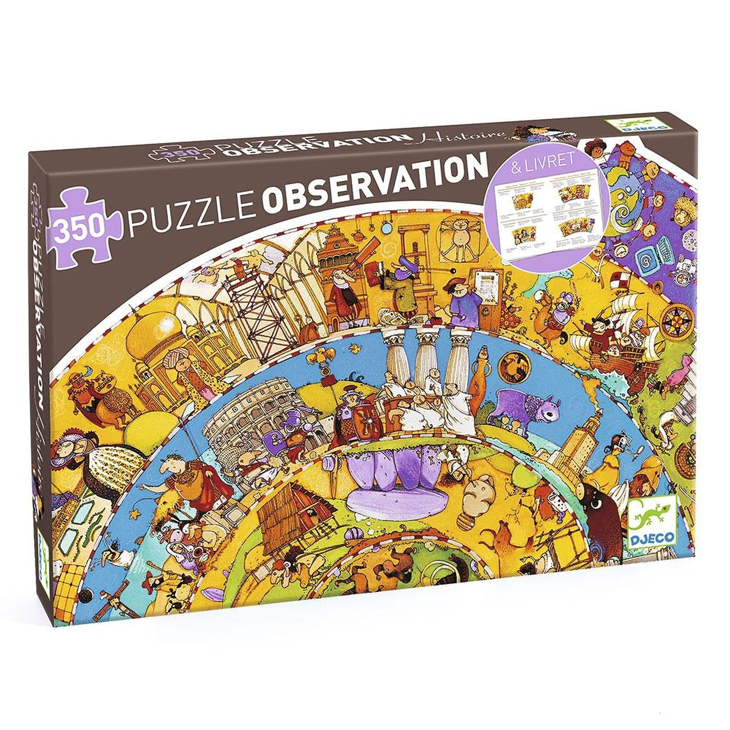 Djeco nos traz este detalhado quebra-cabeça de observação + livro + pôster da história do mundo, com o qual você pode aprender fatos interessantes sobre a história, desde a pré-história até os dias atuais.