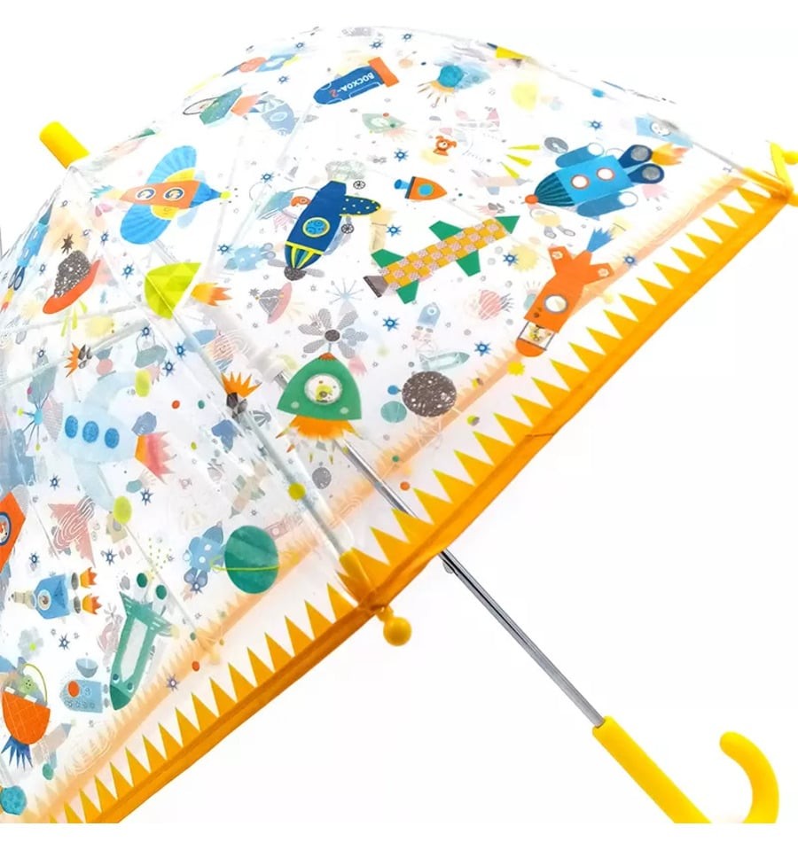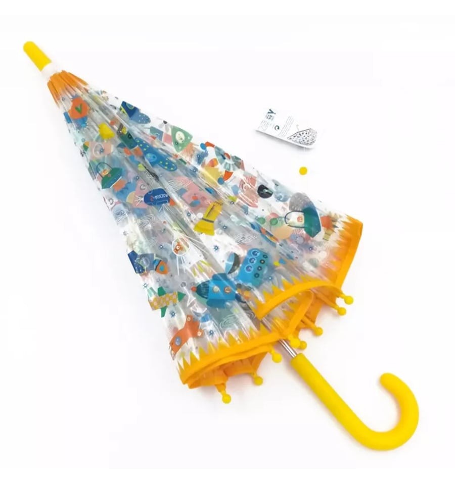 Que legal! Está chovendo! Abra seu guarda-chuva e ande sem se molhar com o guarda-chuva médio transparente com motivos espaciais