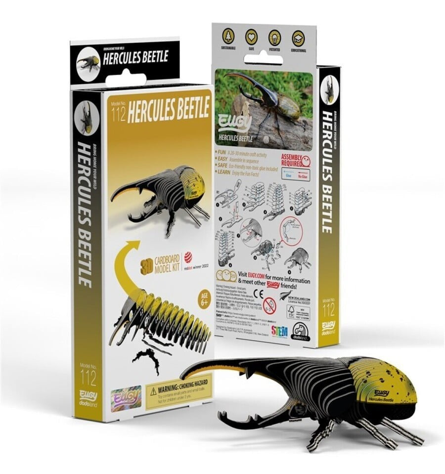 Cada pedaço de papelão reciclado é cuidadosamente montado seguindo instruções visuais simples. Depois de montado, você terá uma linda figura para pular ou exibir em seu quarto, junto com os outros Eugys da sua coleção.