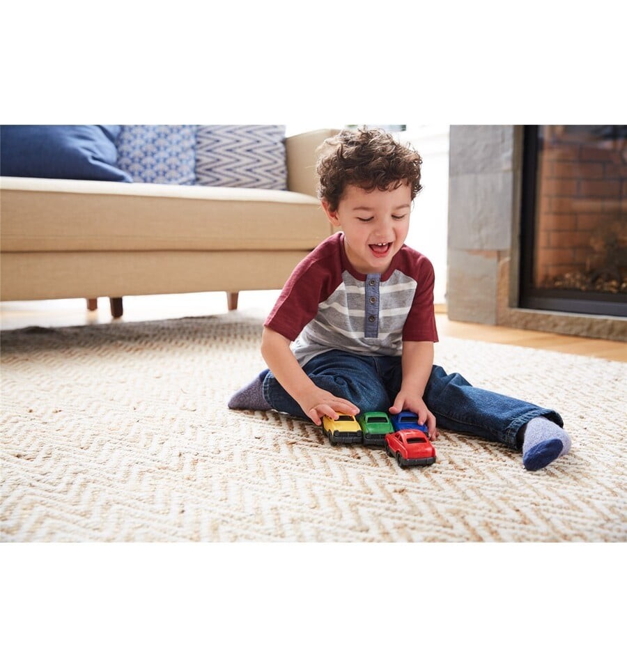 Ele é feito de garrafas plásticas de leite 100% recicladas, então se o carrinho ficar sujo enquanto você brinca, você pode até colocá-lo na máquina de lavar louça!
