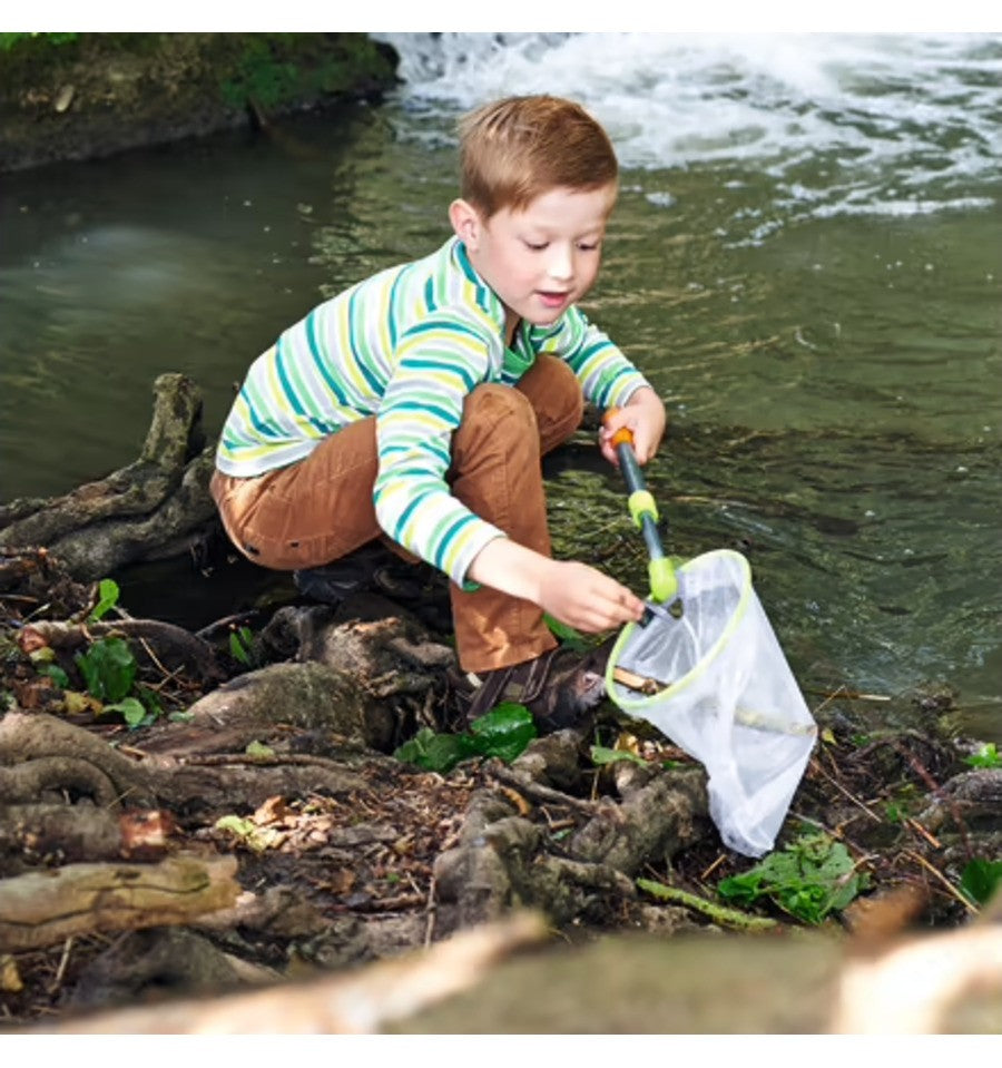 Rede telescópica Terra Kids, perfeita para coletar borboletas e outros insetos no campo, ou pescar pequenos peixes e crustáceos na praia, no rio ou no reservatório.
