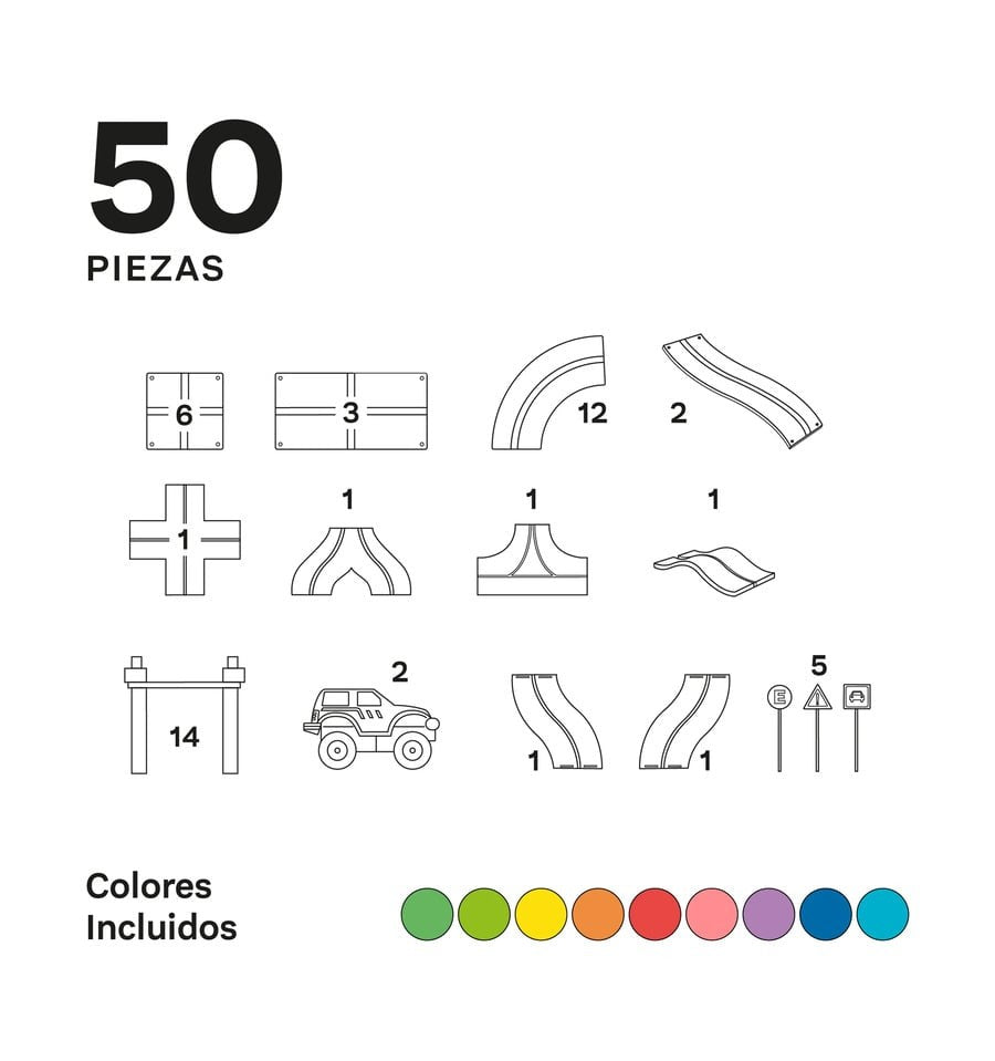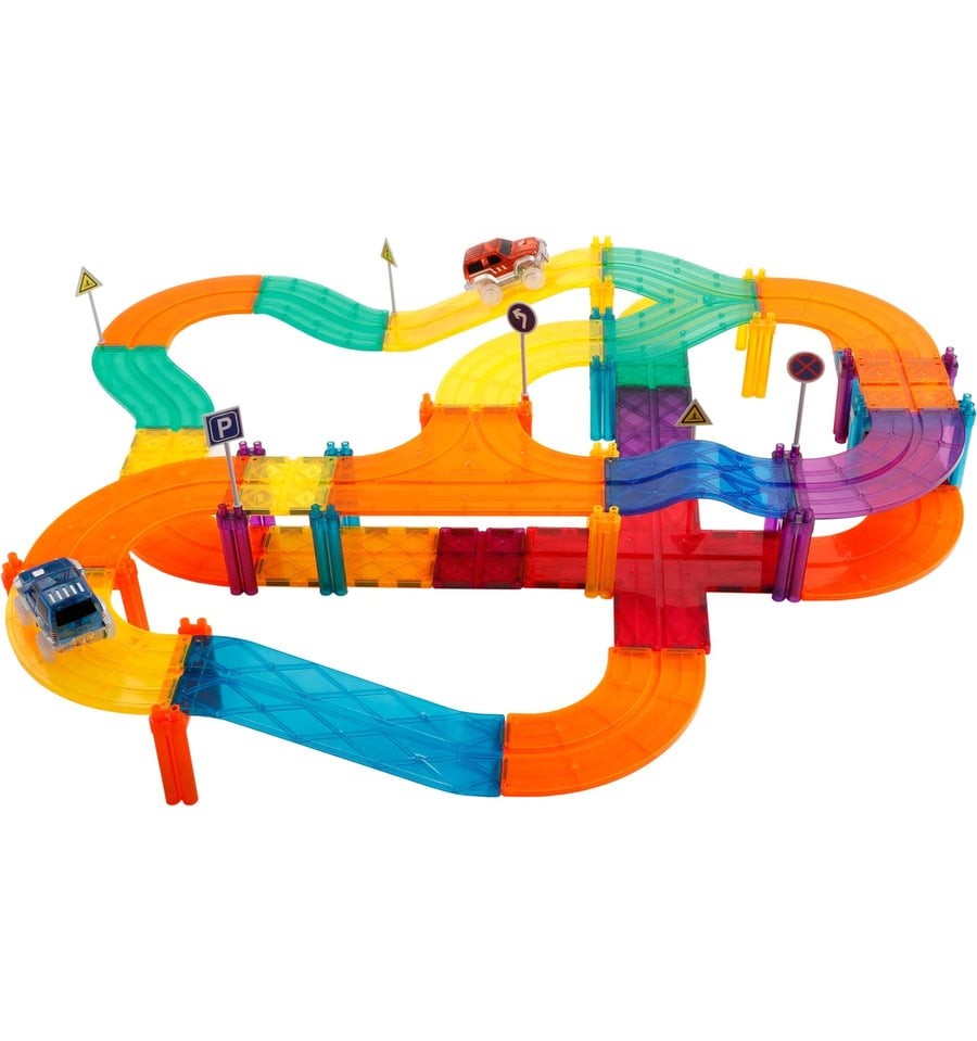 Construa sua própria pista 2D e 3D com blocos geométricos de diferentes tamanhos e cores.