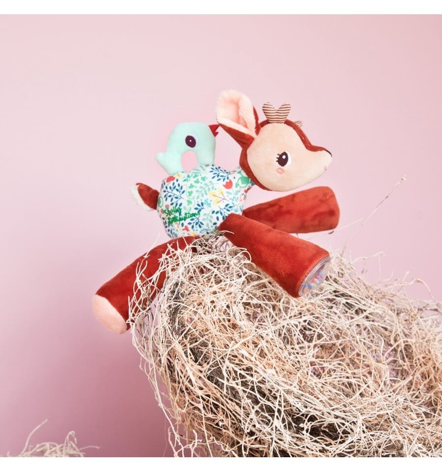Com seu design charmoso e cores vibrantes, Stella não é apenas um brinquedo, mas também uma amiga brincalhona que certamente se tornará uma parte querida da infância do seu pequeno! Deixe-se levar pela doce melodia e pelos sons dos pássaros de Stella, o cervo canoro dos Lilliputiens.