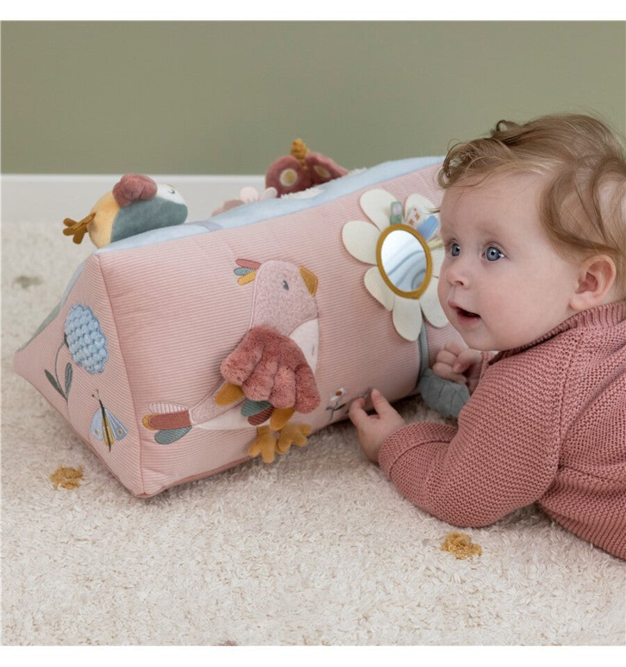 Esta almofada triangular de atividades despertará a curiosidade do seu filho no momento em que ele a vir. Cada lado contém uma atividade diferente para o desenvolvimento e diversão dos sentidos, como texturas, cores e sons para entreter os pequenos. Você pode colocá-lo em cima dele para iniciar o reflexo de engatinhar.