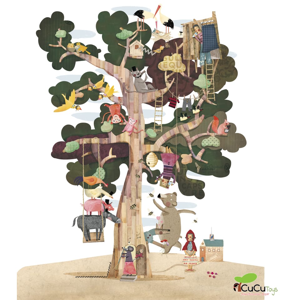 Que festa fizemos debaixo da árvore para celebrar a primavera! Todos os nossos amigos vieram: O urso guloso, o ratinho convencido, Chapeuzinho Vermelho e o lobo, o esquilo, o macaco... são tantos que não cabem em casa!