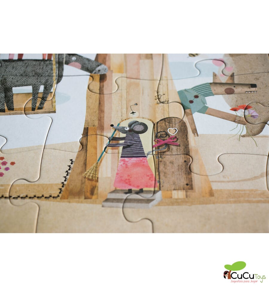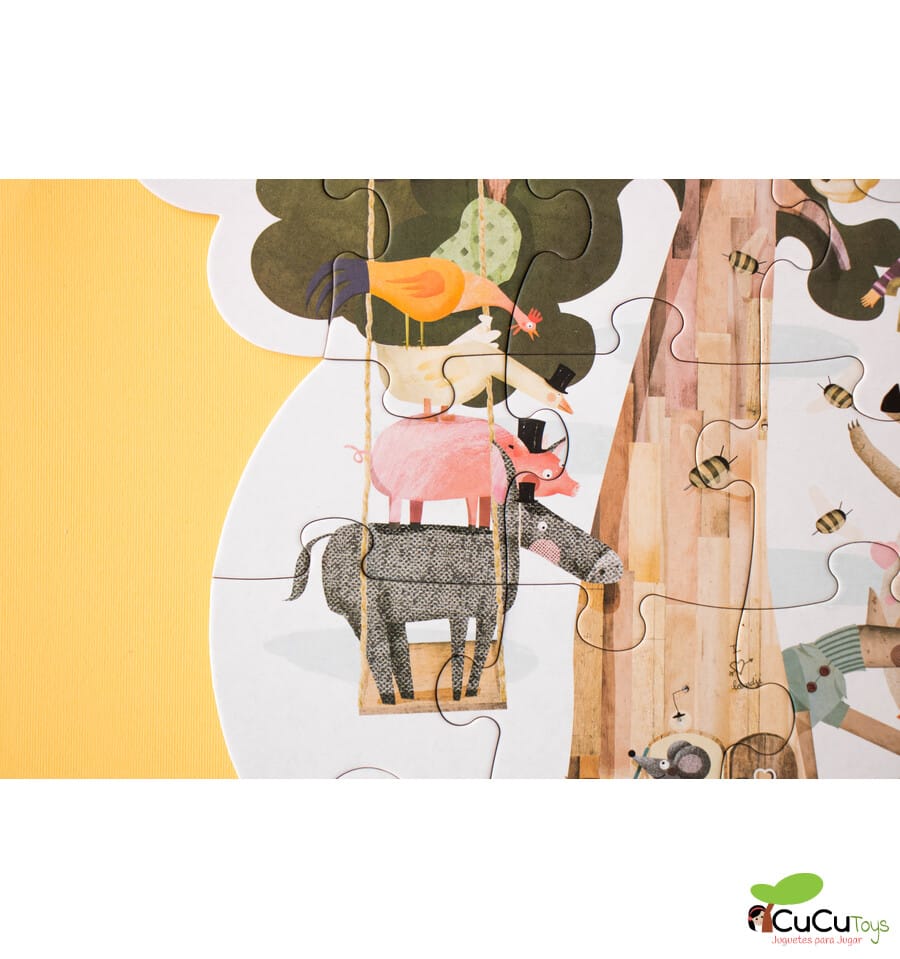 O melhor deste grande quebra-cabeça, de quase 70 cm de comprimento, é que ele é reversível: de um lado você tem a primavera com todos os bichinhos espalhados pelos galhos, e do outro lado, o inverno, com todos os animais reunidos e escondidos para não passarem frio.