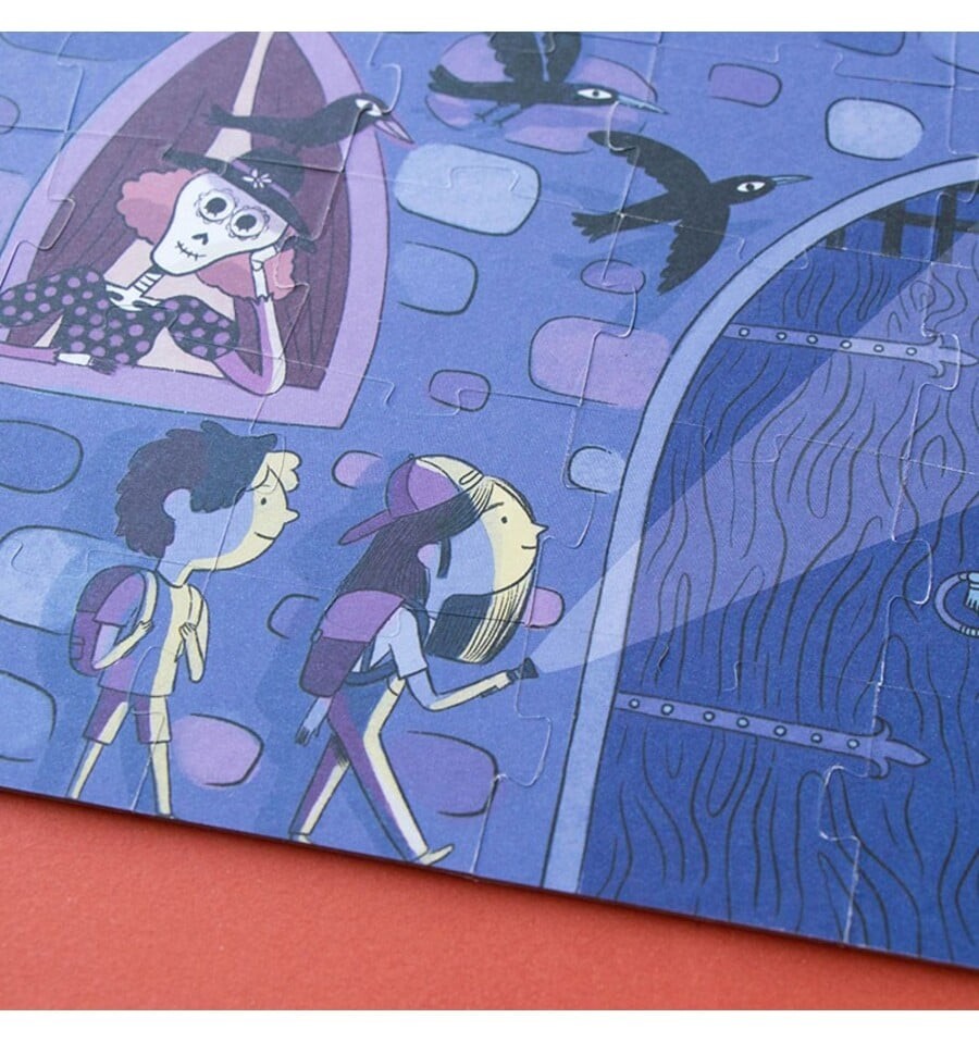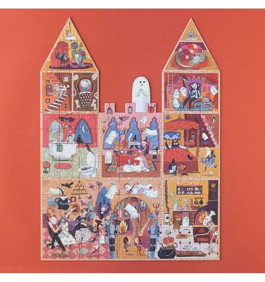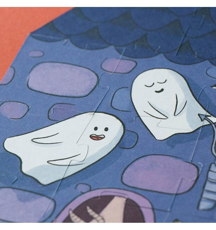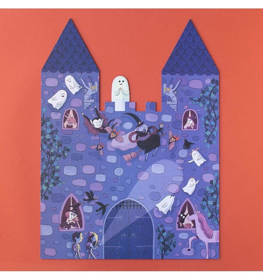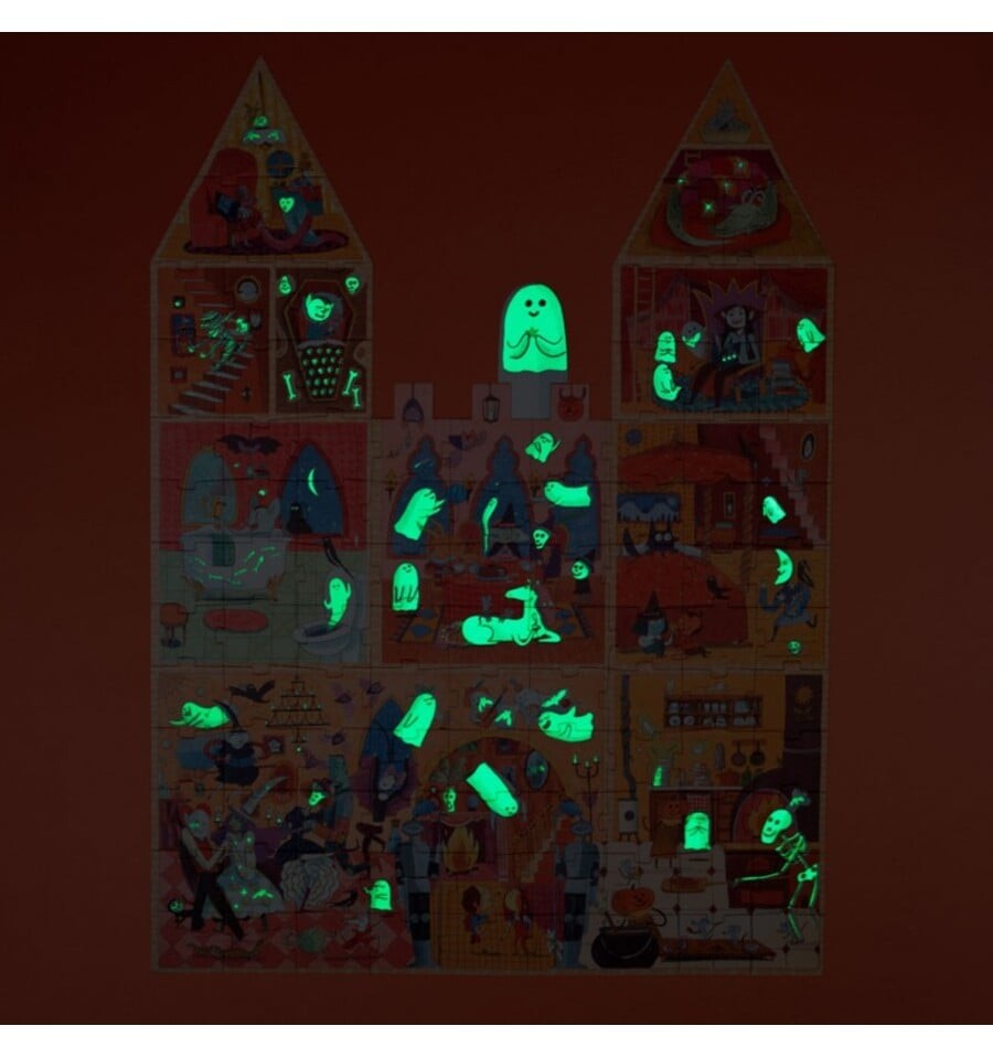 Você tem coragem de entrar no castelo encantado? Monte este divertido quebra-cabeça de 100 peças, apague as luzes e surpreenda-se com os fantasmas que brilham no escuro.
