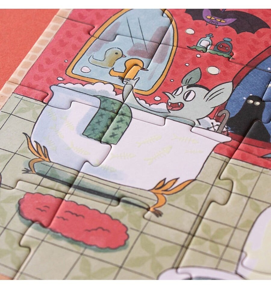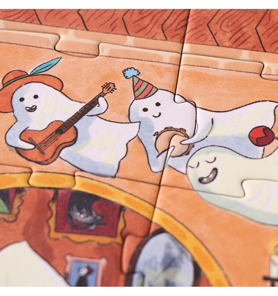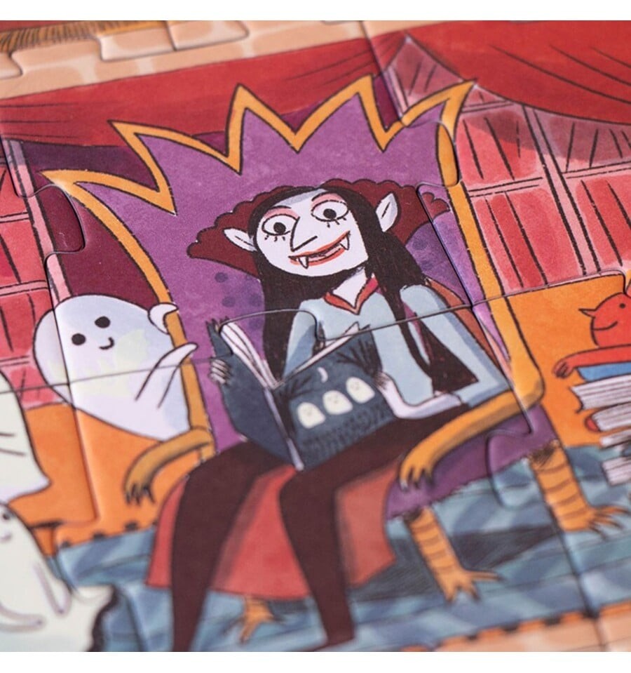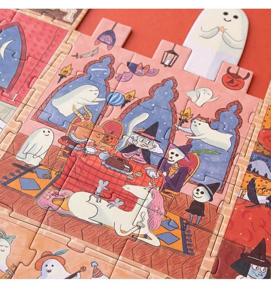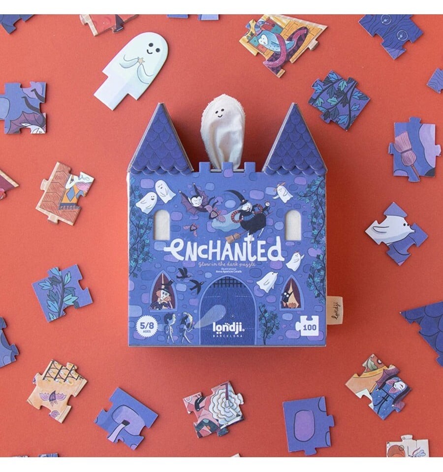 Você tem coragem de entrar no castelo encantado? Monte este divertido quebra-cabeça de 100 peças, apague as luzes e surpreenda-se com os fantasmas que brilham no escuro.
