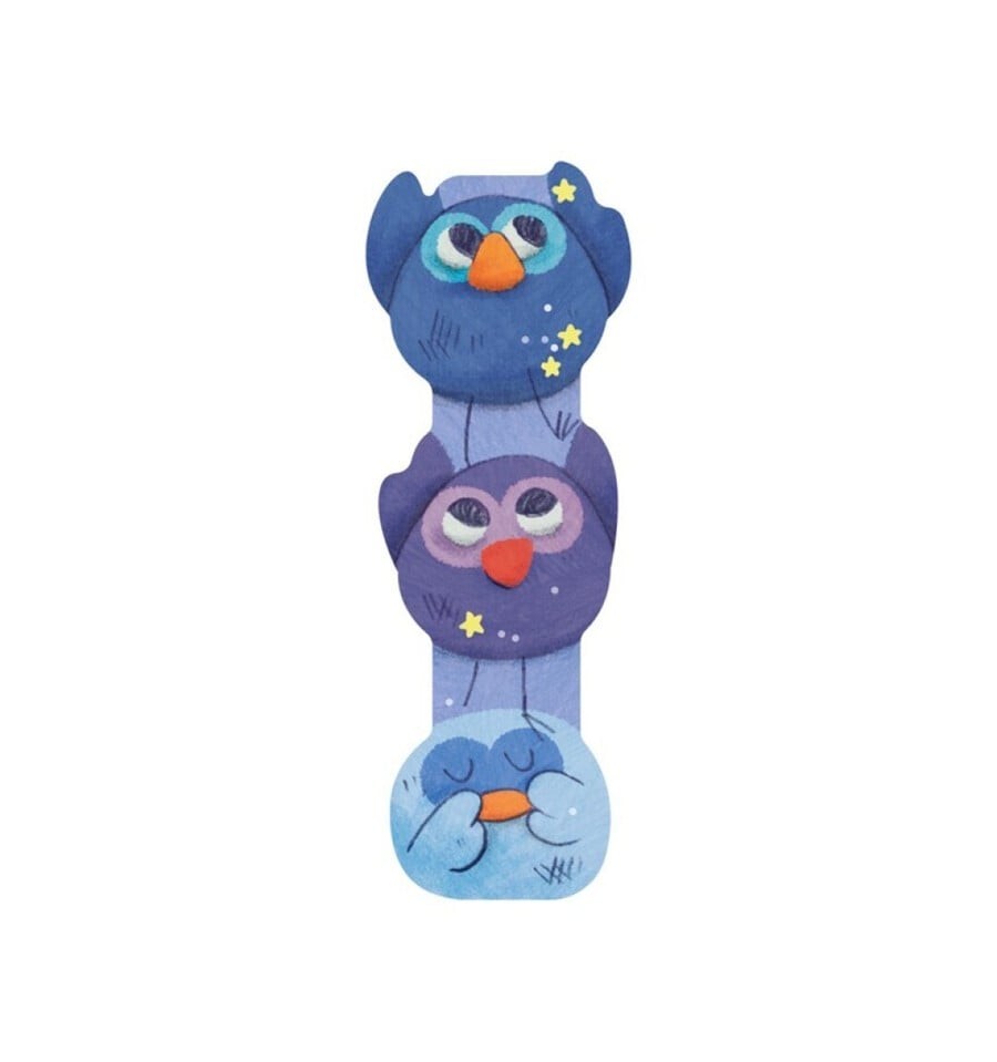 Letra I feita em madeira e pintada com desenhos divertidos das coleções do Moulin Roty, em tons de azul