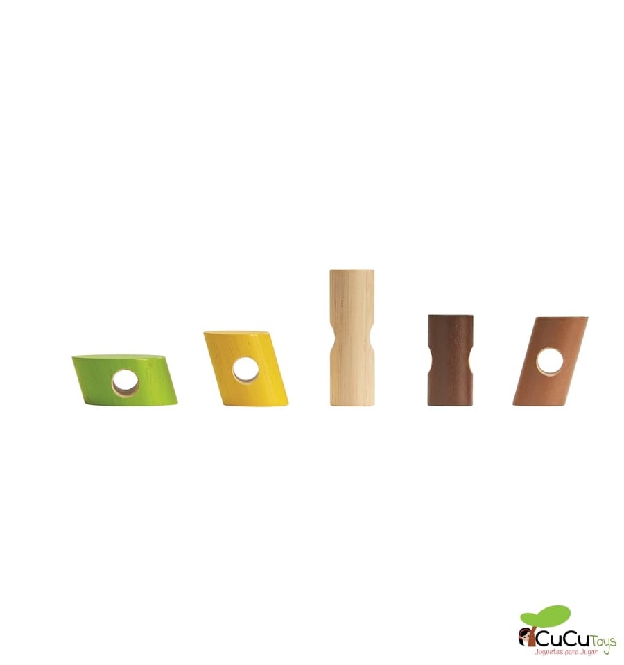Com a textura da madeira natural e os tons neutros dos seus corantes vegetais, são um acessório ideal que não pode faltar entre os brinquedos essenciais das nossas crianças.